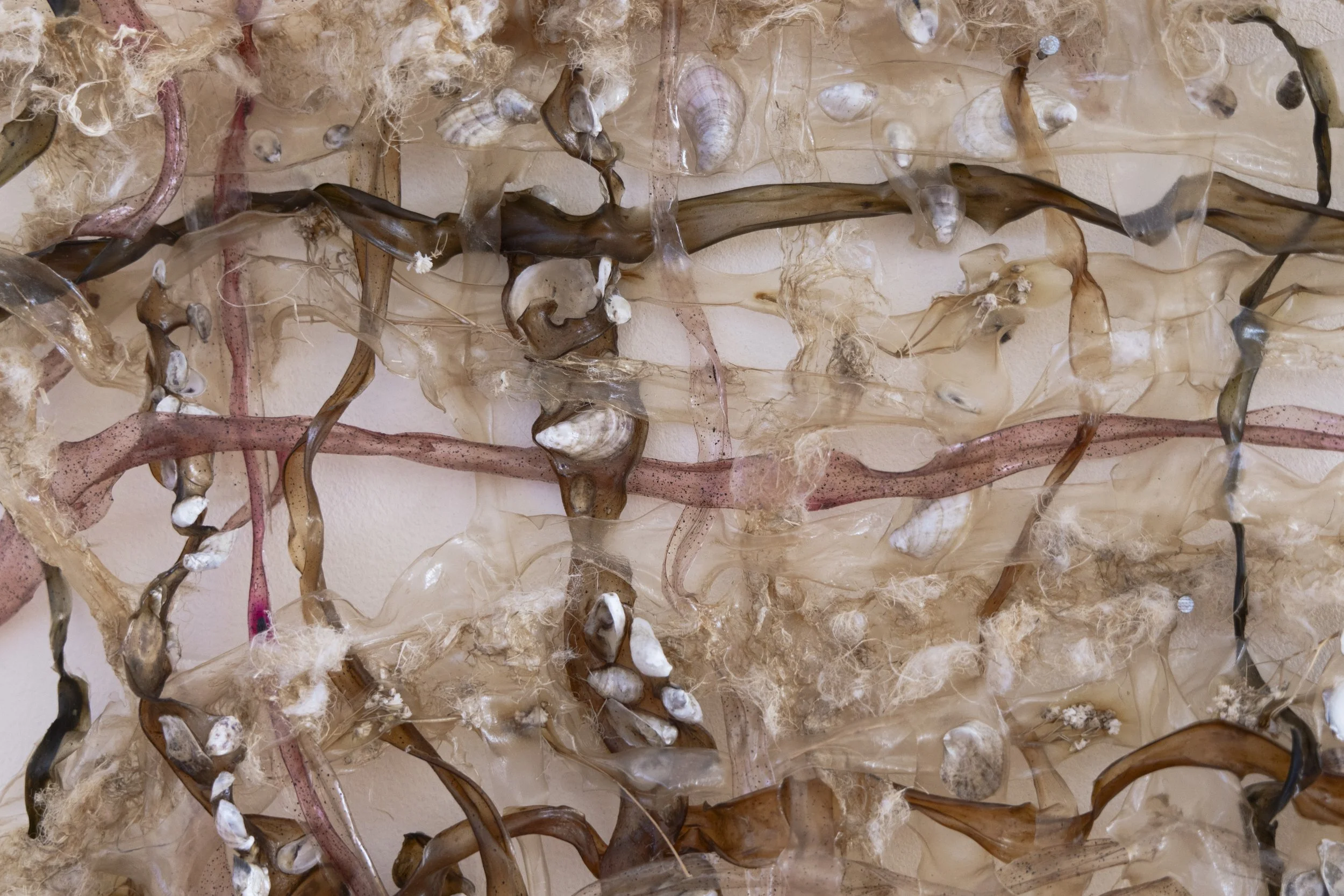 Bethany Rooklidge, Laboratory, 2025. Agar-agar based bioplastic, sand, lamp.