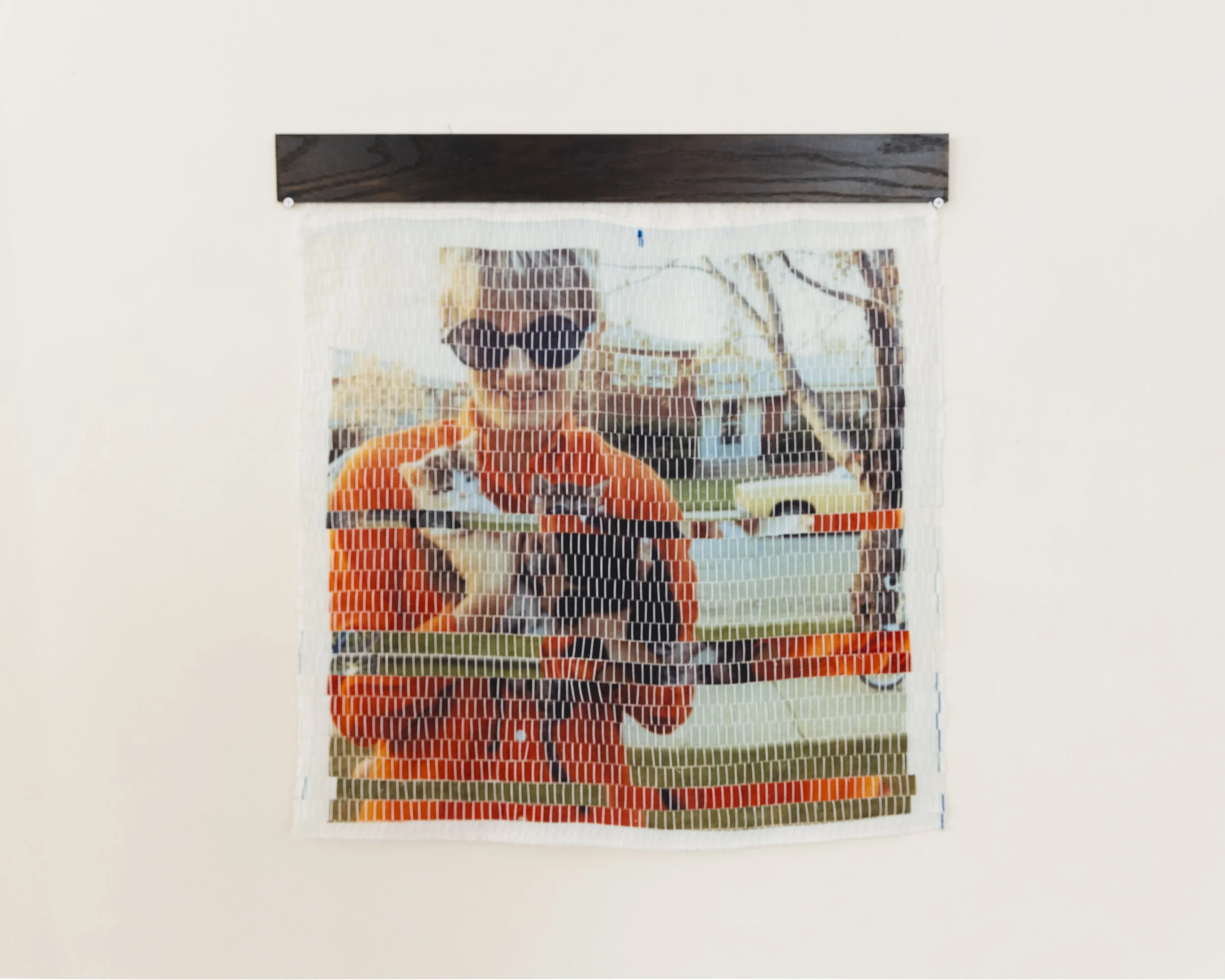 Ivy Anderson, Something (on the wall) no. 8, 2025. Found object, acrylic, elastic on wood panel